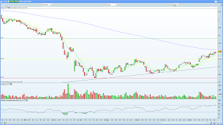 Do ponto de vista técnico, está ali nos 81 cêntimos a média móvel dos 200 dias que travou a subida em março e deu origem ao terrível movimento descendente anual. Em termos de resistências, é evidente a zona dos 88 e pode ser um bico de obra quebrá-la se o PSI20 entretanto não animar. Atenção à situação de sobrecompra no curto prazo.