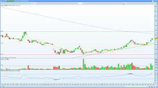 A nosso ver há uma zona onde poderão aparecer muito vendedores e não será fácil continuar a subir sem arriar um pouco para dar oportunidade a outros de também entrarem na dança. Falamos do intervalo entre os 0,220 e os 0,222 por causa do fecho daquele gap, aberto em dezembro, quando se anunciou o AC. Não é que o valor seja significativo e julgamos até que, numa ação que tenta sair de um bear market brutal como é o caso, é possível que nem ocorram grandes sobressaltos na escalada, mas o nervosismo leva sempre muitos a identificar possíveis razões para vender e esta é uma tão boa quanto qualquer outra. Evidentemente, quem anda com o BCP às costas há mais de um ano deve ignorar todos estes solavancos: se aguentou até aqui, que motivos poderão existir para vender agora? É deixar rolar que o mercado está sempre a ver meio ano à frente e se isto continuar a cantar, então é porque, no final do verão, andaremos a ouvir o Marques Mendes dizer que "a situação da banca lusa é hoje muito melhor que há seis meses atrás!"