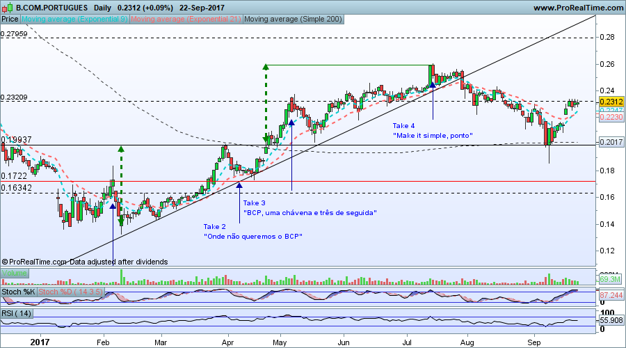 Vou-vos dizer. Desde há largos meses que só tenho negociado BCP e Pharol. Muito provavelmente as duas mais mal amadas do nosso índice. Para além da minha mania de não ir pelas massas tem, e sobretudo, a ver com a aquilo que entendo ser a minha estratégia de negociação - e essa está bem vincada nas dezenas de opiniões, leituras e análises que vou partilhando - e por já estar um pouco como peixe na água na percepção dos movimentos da negociação das ditas cujas, por muito que por vezes me falta a água! E isso é o quanto baste para me sentir confortável com a posição! Mas não confundamos conforto com certezas! Essas não existem!