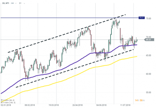 As sanções ao Irão por parte do EUA já entraram em vigor, mas o Irão mostra abertura a negociações se se suspenderem estas sanções. A diminuição de oferta no mercado, leva o petróleo a valorizar.