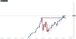 Com as Yields das treasuries a impulsionar o setor financeiro assistimos a um movimento firme por parte dos índices norte americanos , principalmente perto do final da sessão. Hoje será determinante observar o fecho em D1 do SP500,no entanto se observarmos a vela semanal do activo, esta zona parece apenas um breakout do máximo anterior com retest e agora parece preparar-se para registar um" higher high" e manter a tendência altista.